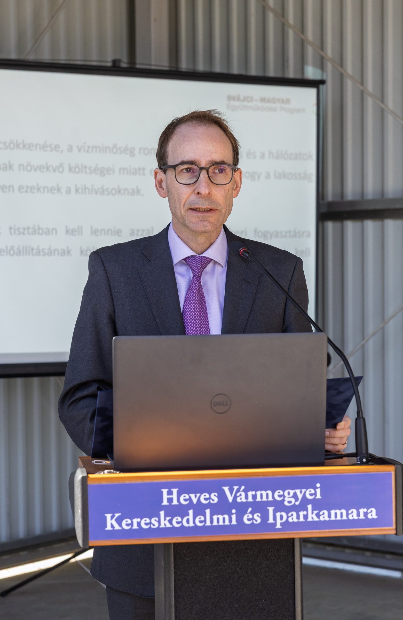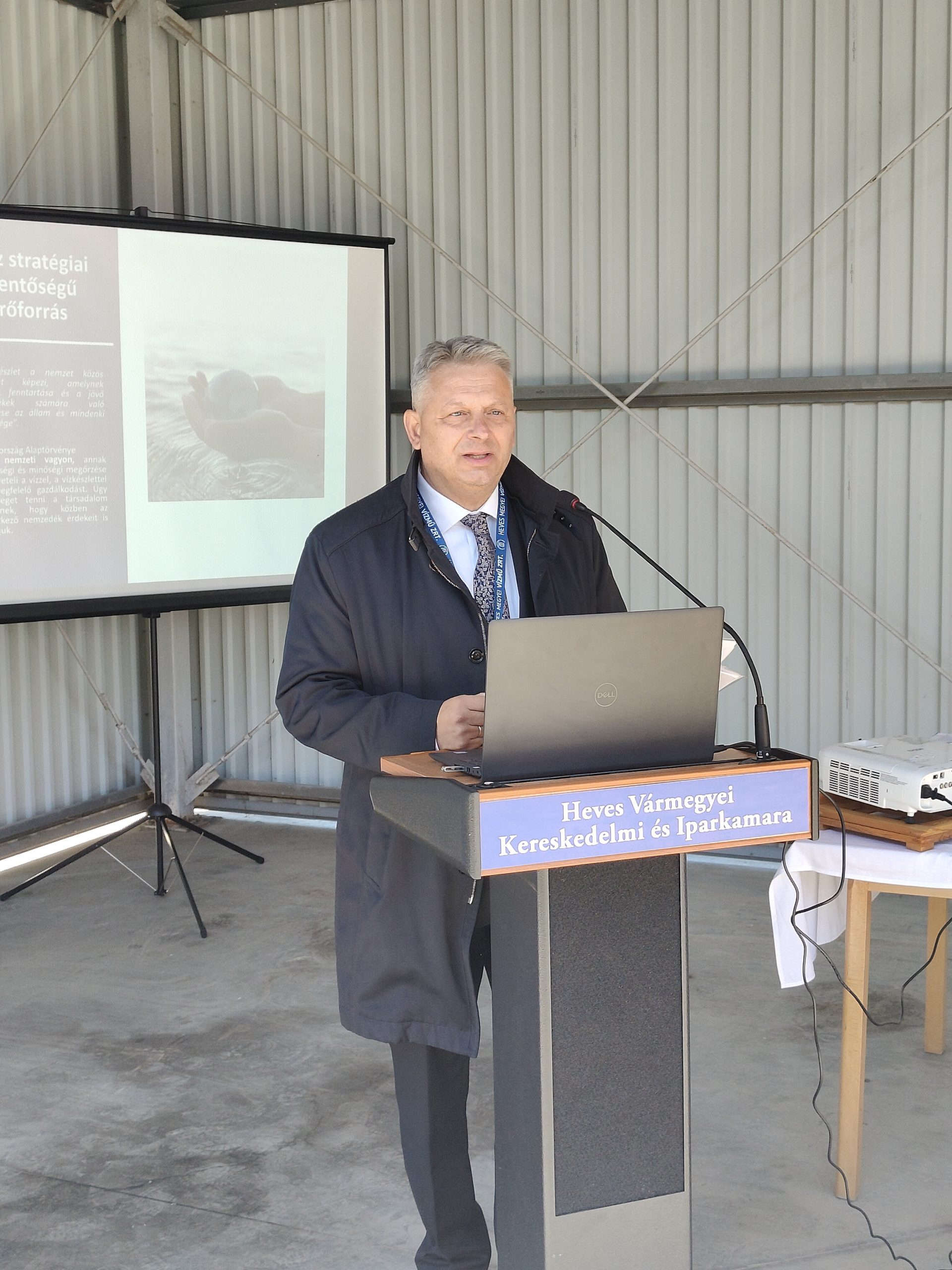 Negyedik előadóként a Heves Megyei Vízmű Zrt. vezérigazgatója, Sasvári Szilárd köszöntötte a jelenlévőket.