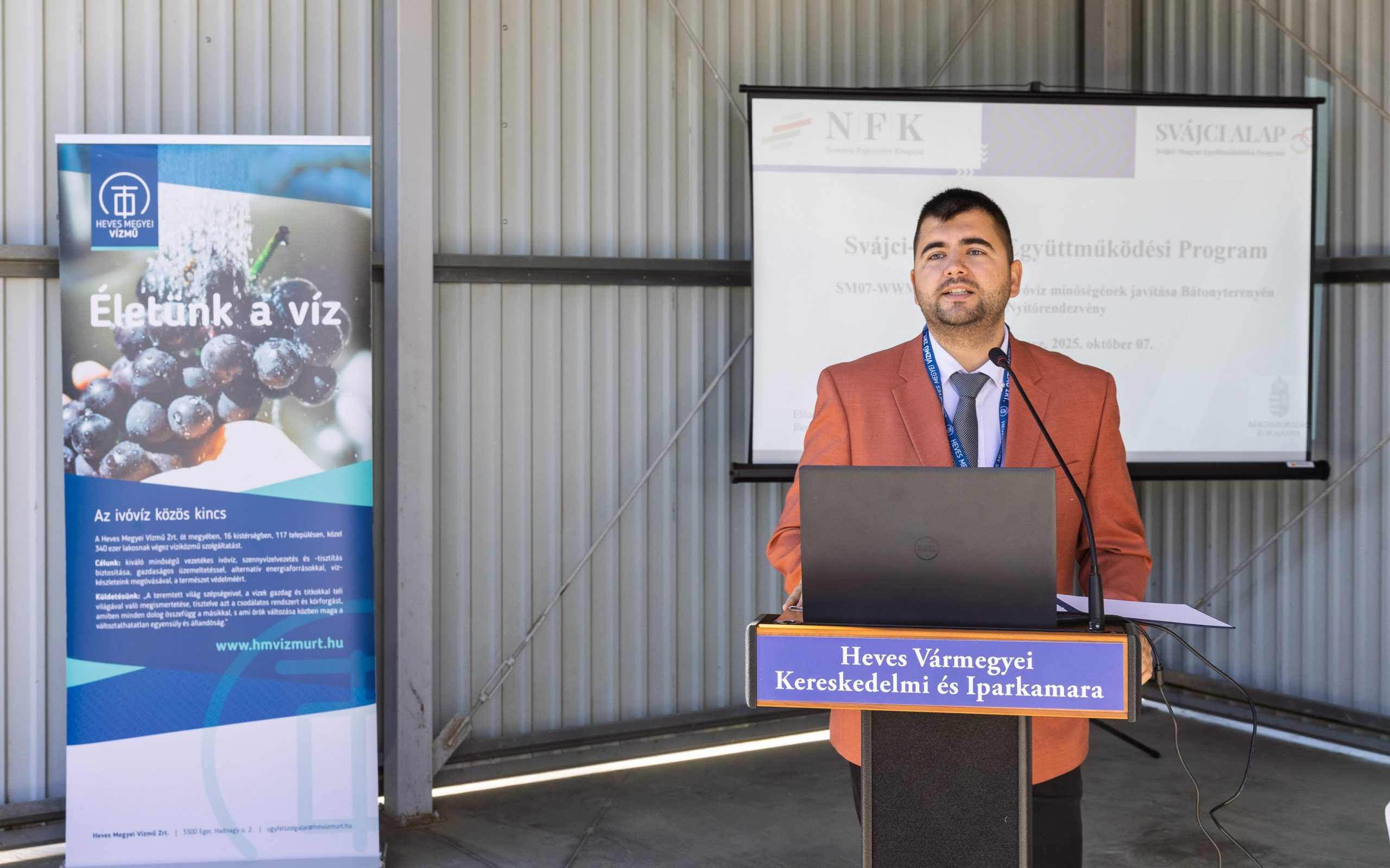 Negyedik előadóként a Heves Megyei Vízmű Zrt. vezérigazgatója, Sasvári Szilárd köszöntötte a jelenlévőket.